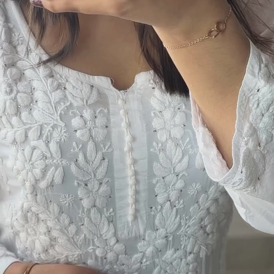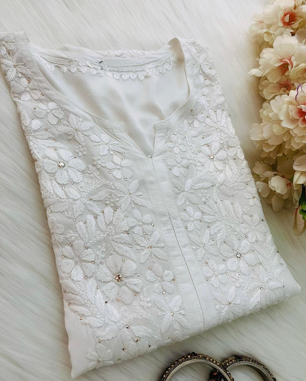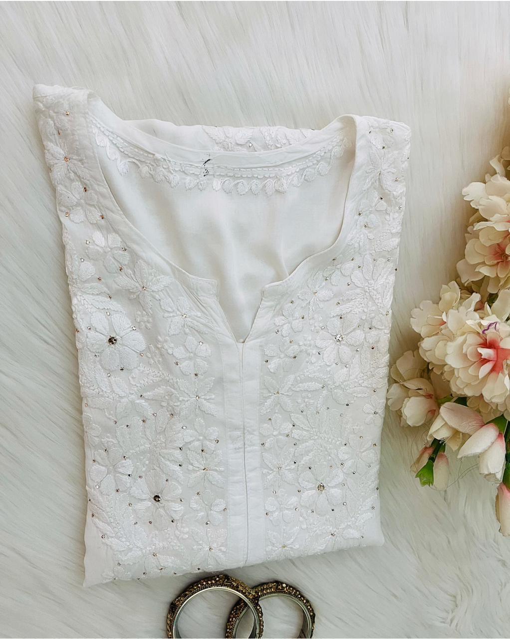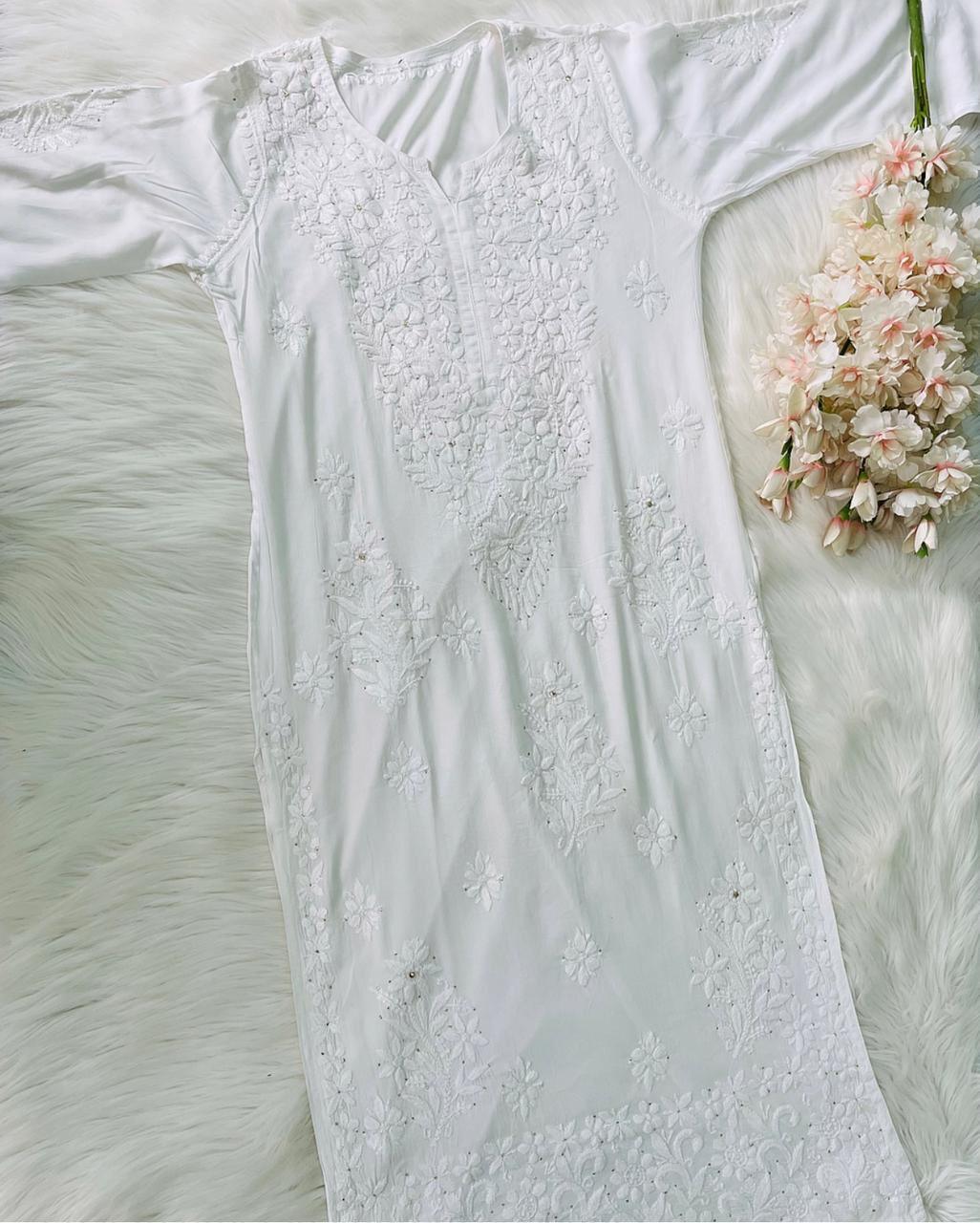 Indulge in the sheer luxury of our Sparkling White Modal Mukaish Ensemble! This premium set combines the softness of modal fabric with exquisite Mukaish detailing, ensuring both style and comfort. Ideal for a variety of occasions, from casual outings to special events, this ensemble promises to make you stand out with its timeless elegance.