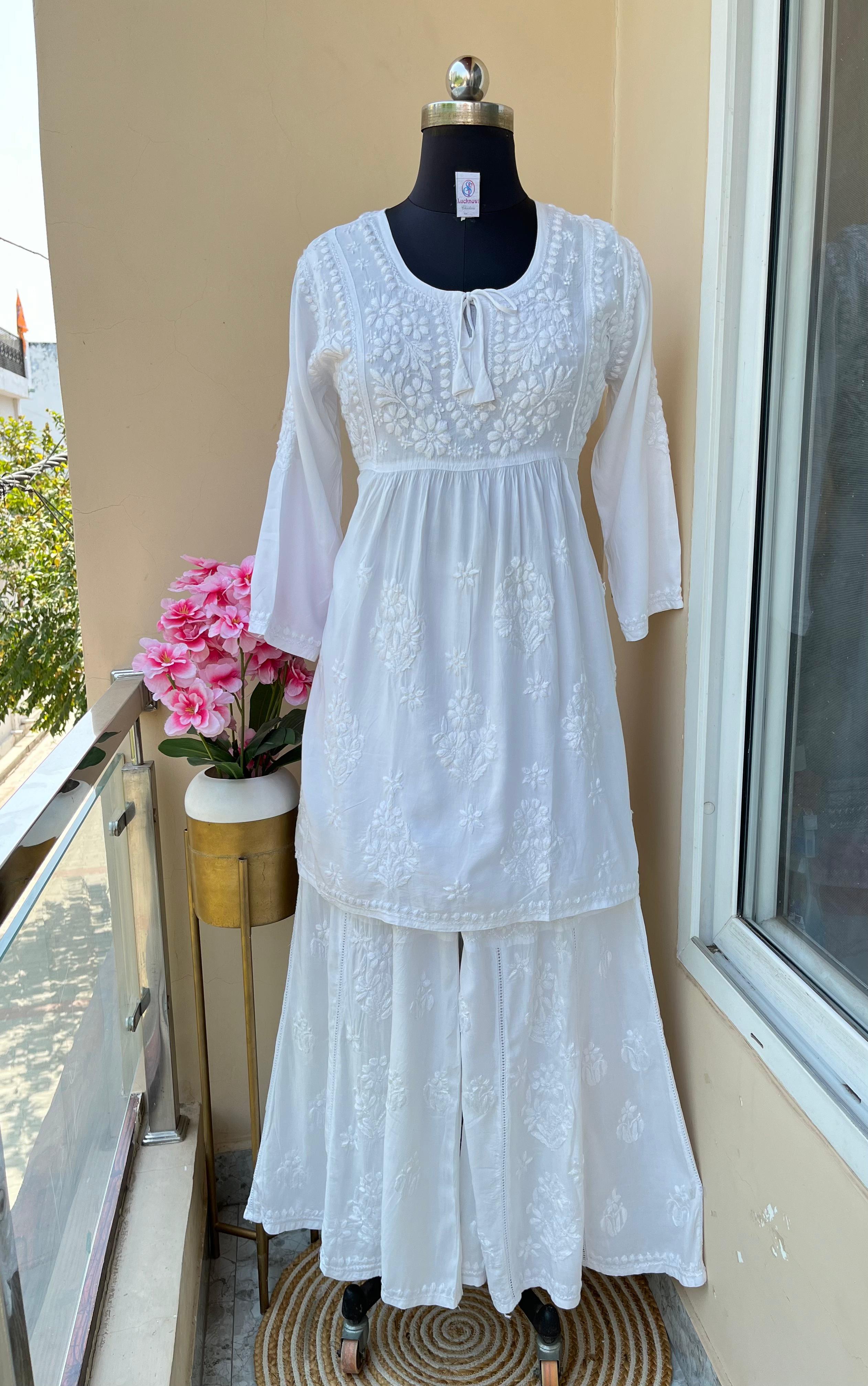Adorned with pure Lucknowi handcrafted chikankari work, each piece boasts intricate detailing and timeless charm.