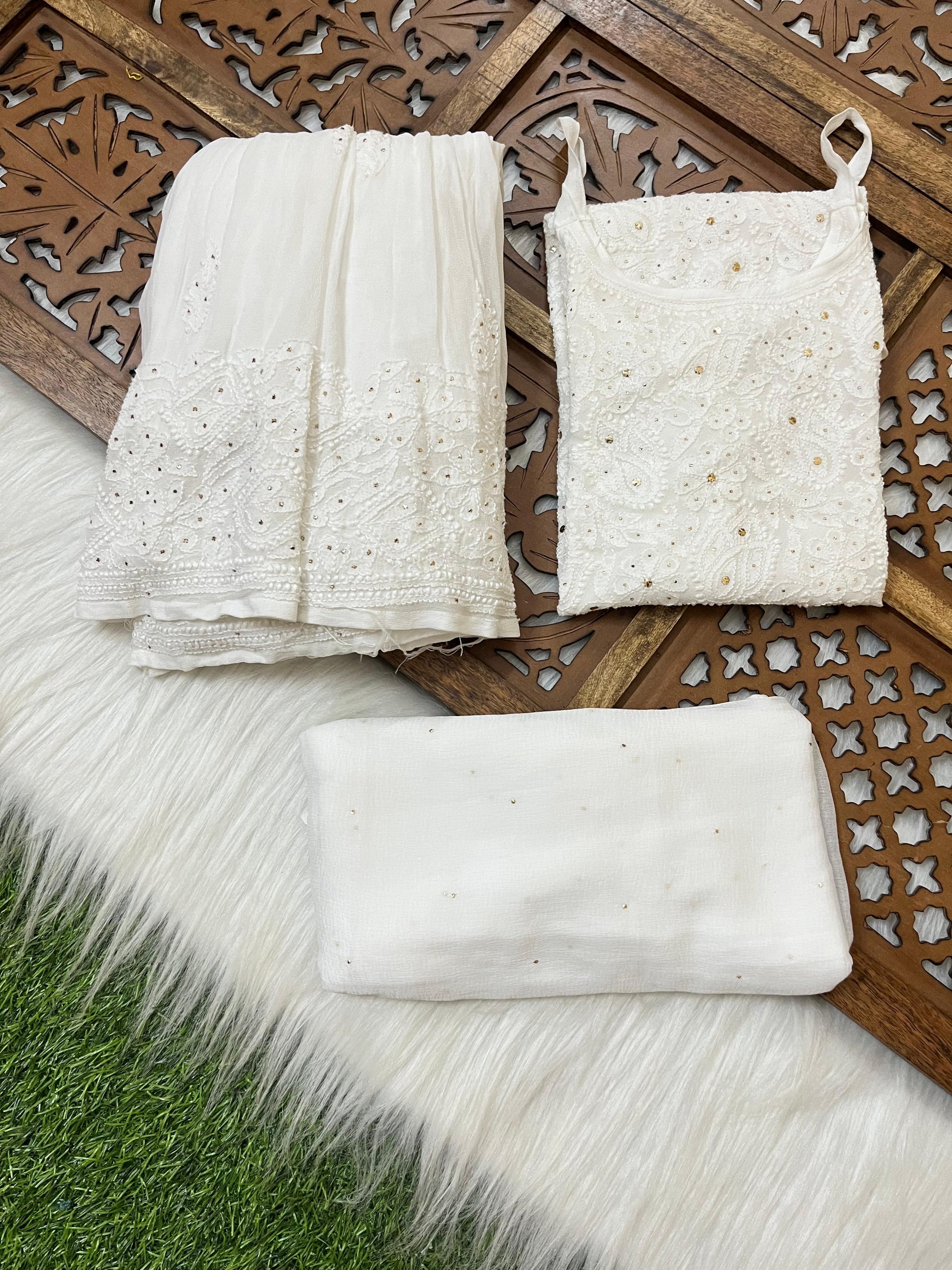 - Work: Pure Lucknowi Chikankari with intricate Resham Thread Handwork