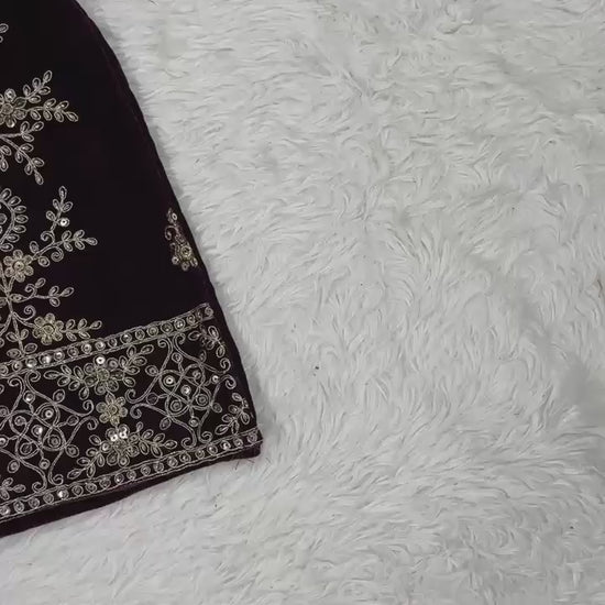- Sharara Palazzo Fabric: Pure Heavy Viscous Velvet with Embroidery Sequence Work