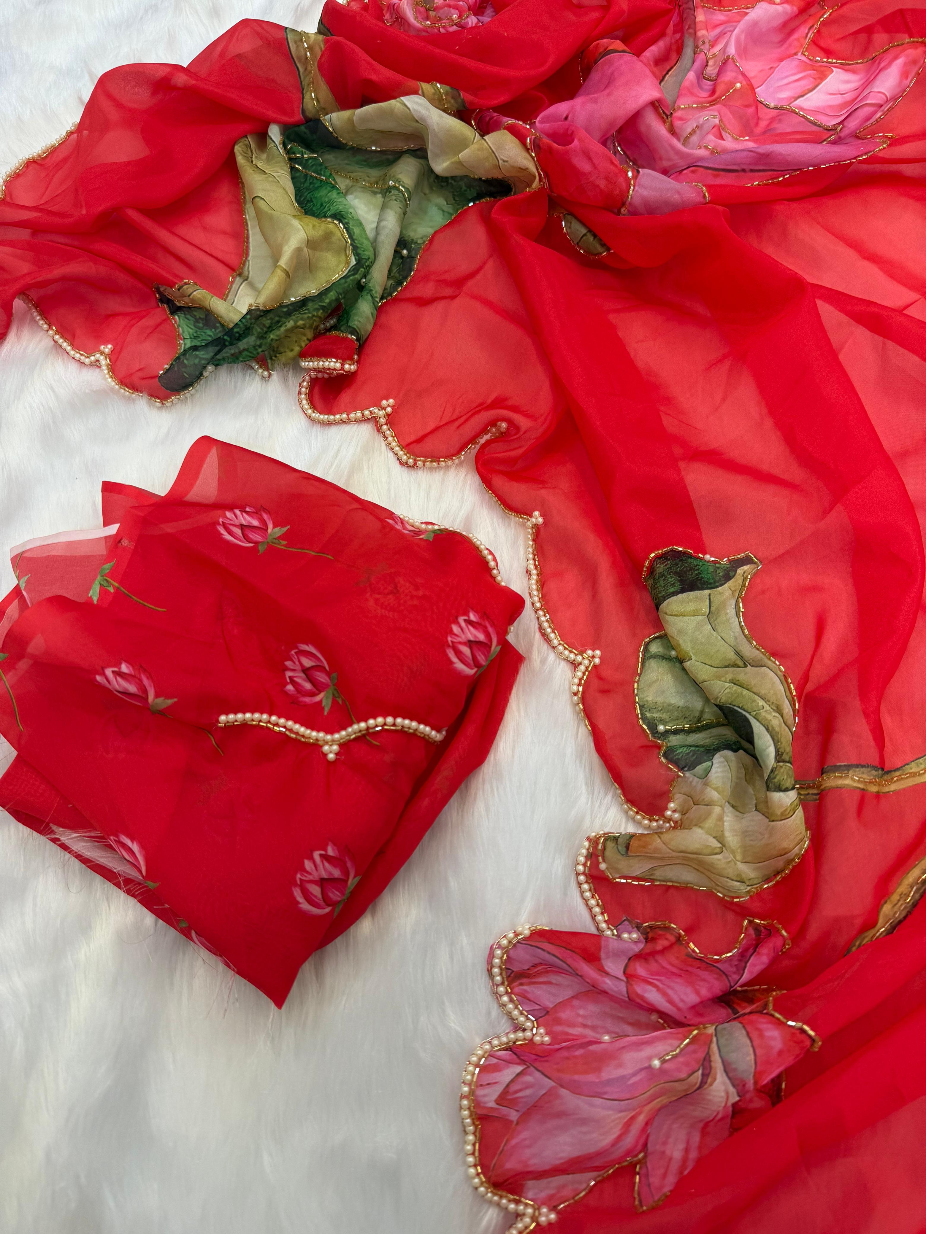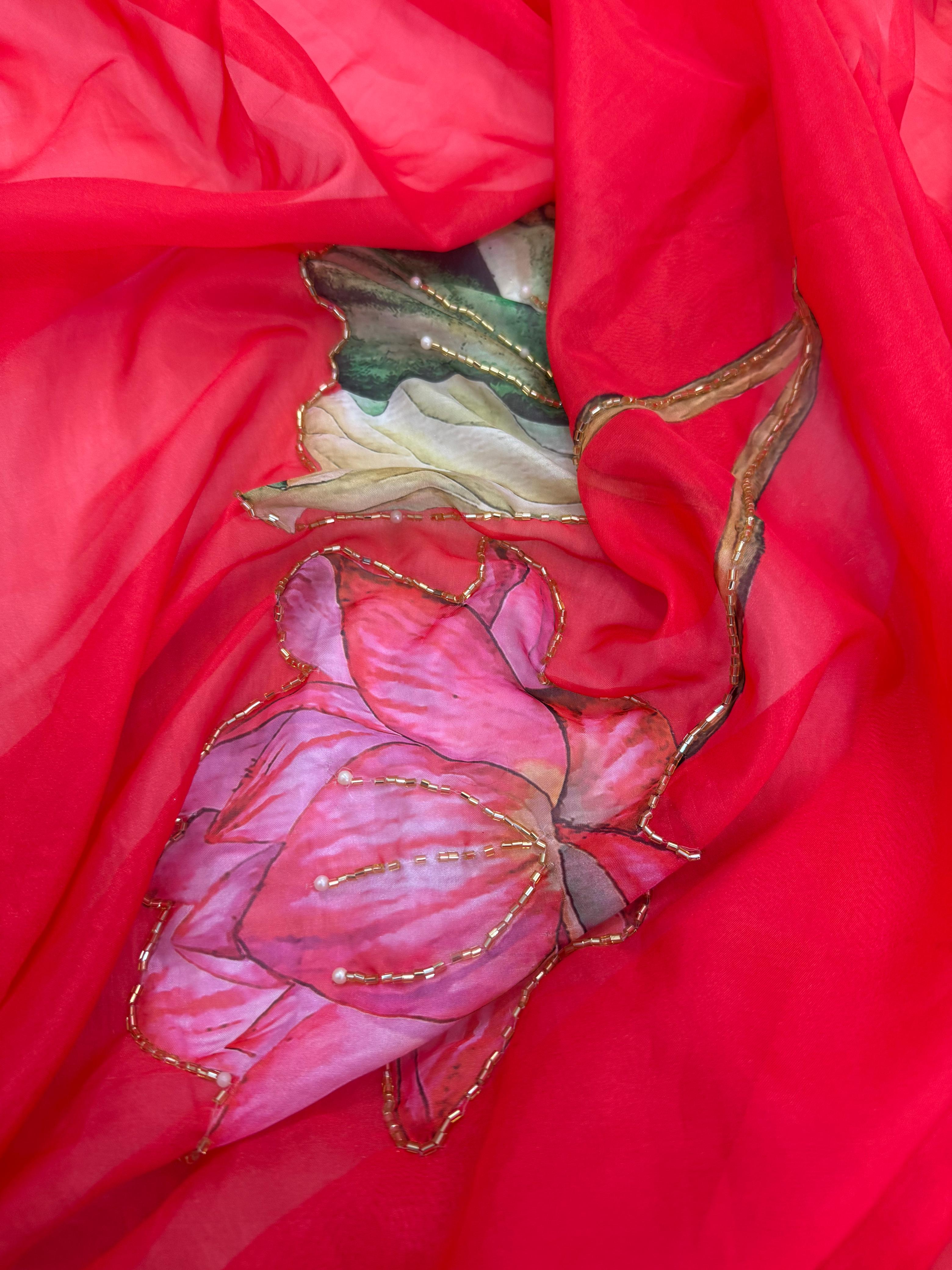 Heavy Crocia Handwork: The suit is adorned with heavy, handmade Crocia work, a traditional art form that adds an exquisite touch of sophistication. The intricate Crocia detailing on the top and sleeves, as well as the dupatta, showcases the meticulous skill of our artisans.