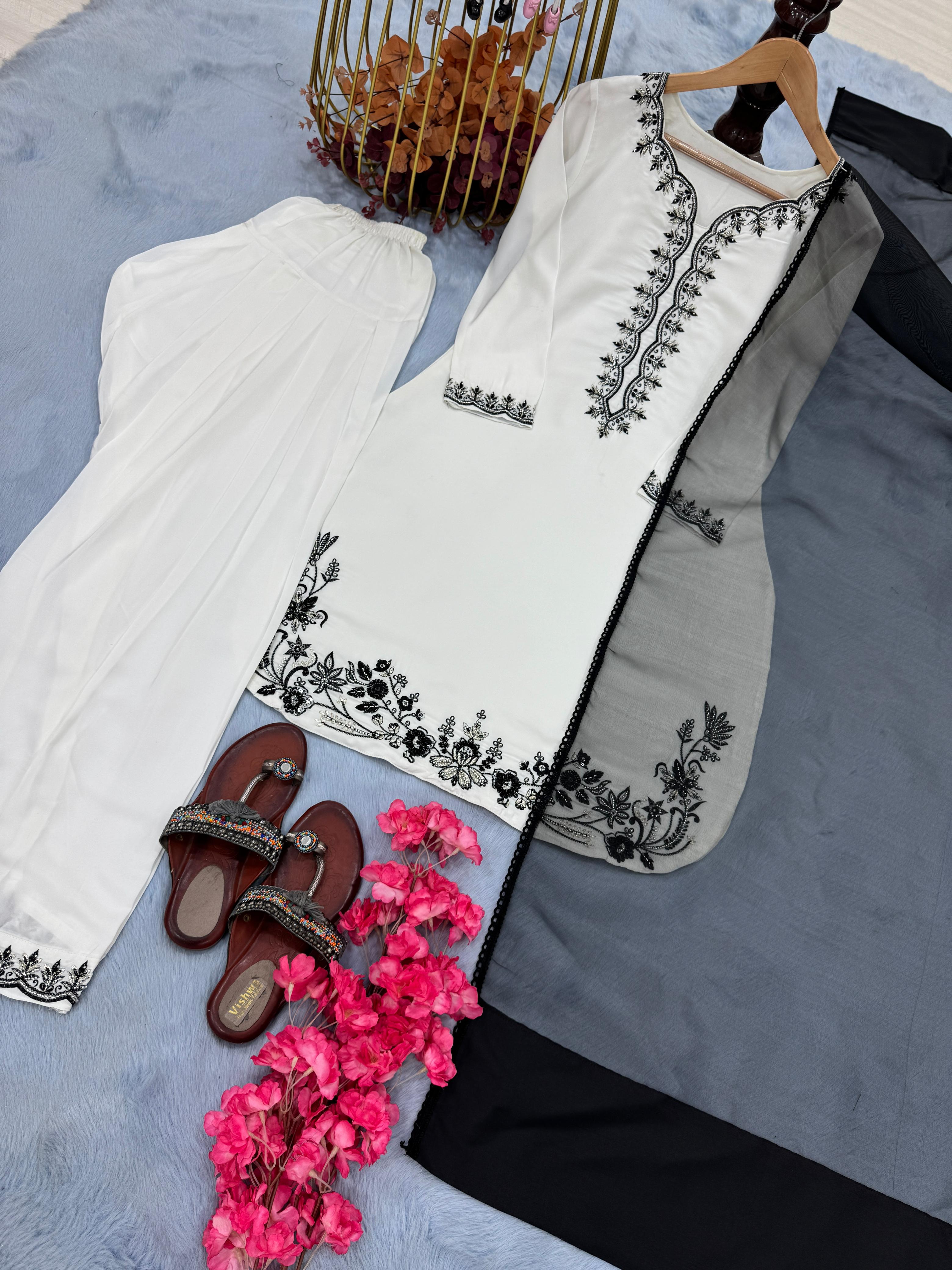 Krinkle Chiffon Elegance: The top and dupatta are crafted from high-quality Krinkle Chiffon, known for its light, airy texture and elegant drape, ensuring a look that's both classic and modern.