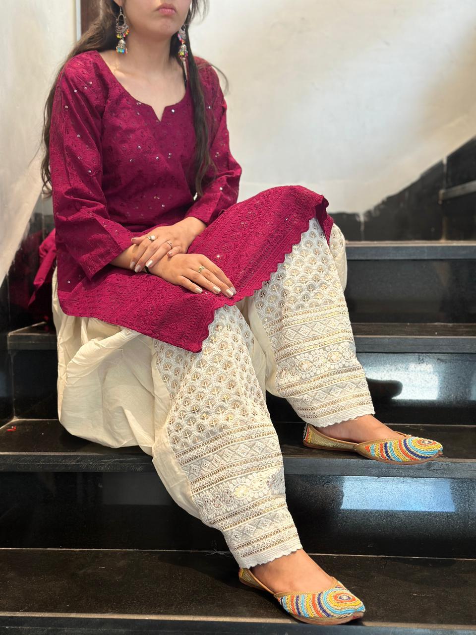 Wine Sequence Chikan Patiala Ensemble